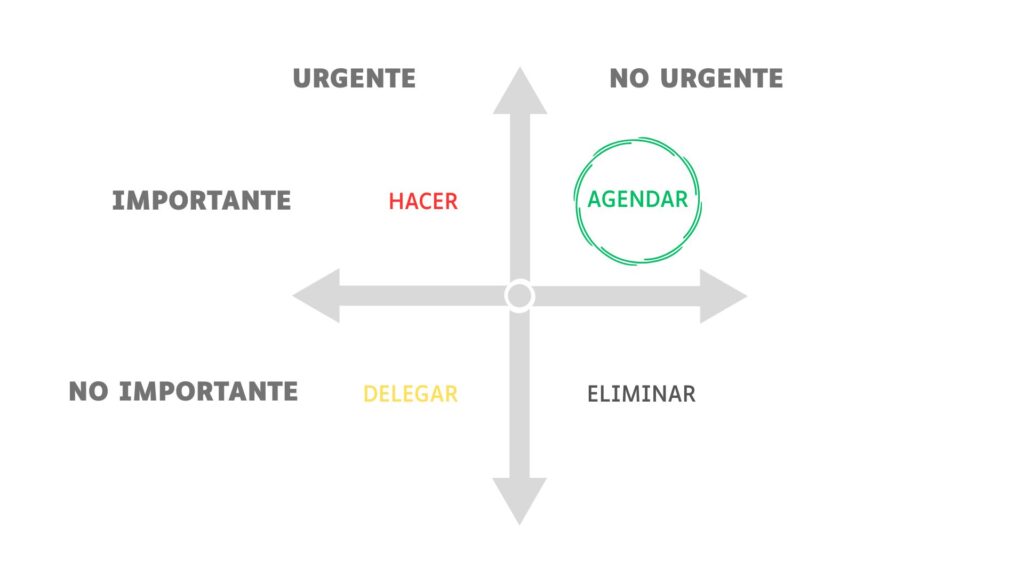 Para esto, siempre es bueno recordar la matriz de Stephen Covey. Esta es una herramienta, simple pero efectiva; permite poner orden a tu vida y organizar tus actividades en función de las prioridades. Teniendo en cuenta el orden y las prioridades, a partir de ahí todo gana claridad. Si no hay orden y prioridades, lo importante en tu vida siempre será devorado por lo ruidoso.